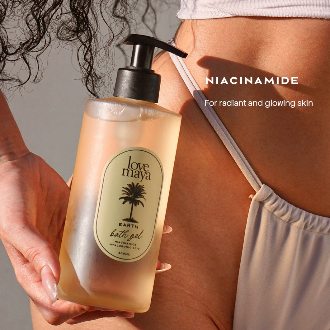 Niacinamide in Bath Gels: Niacinamide is a form of Vitamin B3 that can enhance skin texture and improve issues like fine lines and hyperpigmentation, giving you a radiant complexion.